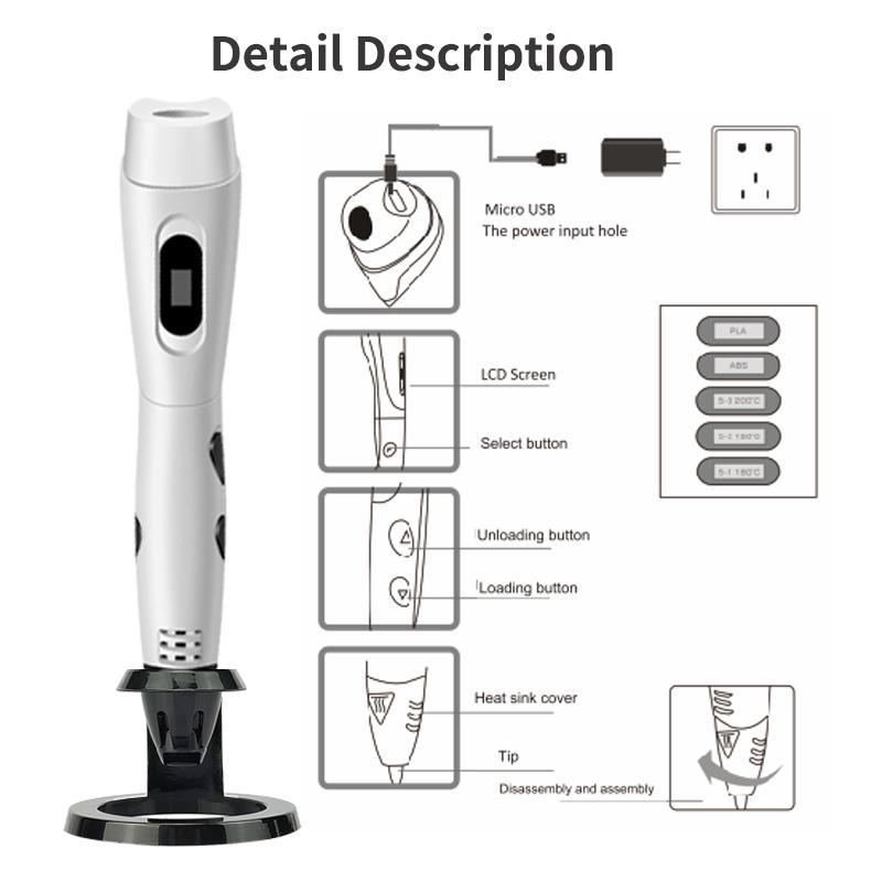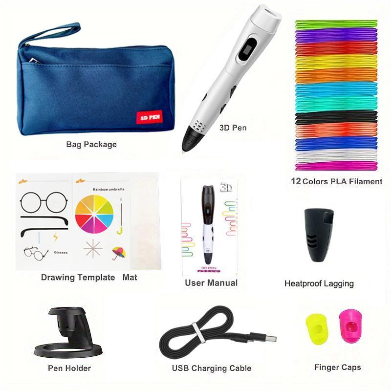Easy-To-Use 3D Printing Pen Set, New Year Gift Birthday Gift DIY Gift, Includes 3D Pen, Blue Storage Bag, Pla Filament, Heat Resistant Finger Covers